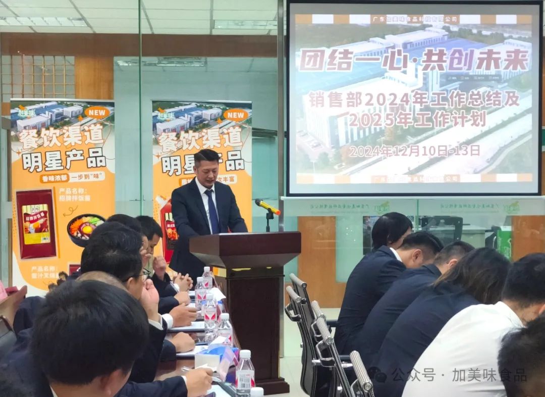2024年即将落幕,回顾这一年,加美味在全体员工的共同努力下,取得了丰硕的成果。今天,我们齐聚一堂,以“团结一心·共创未来”为主题,总结过去,展望未来。会议中,我们不仅回顾了销售团队的优异表现,还通过参观新工厂建设和进行公司产品试吃的环节,感受到公司发展的新气象。让我们一同回顾这次非常有意义的总结会议。