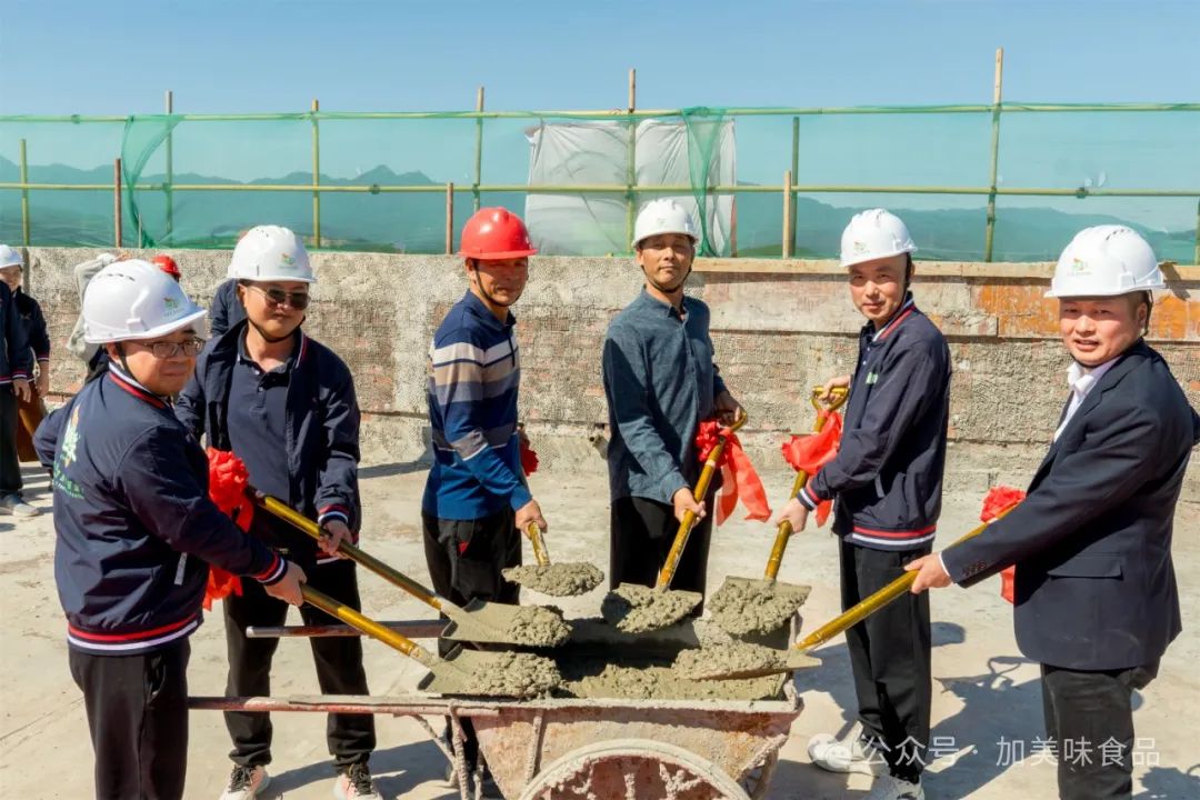 2024年11月29日,广东加美味食品科技有限公司食品生产项目举行了盛大的封顶仪式。在众人的瞩目中,加美味董事长吴上岳、总经理李晓东携公司员工出席厂房封顶仪式,共同见证这一历史性的时刻。